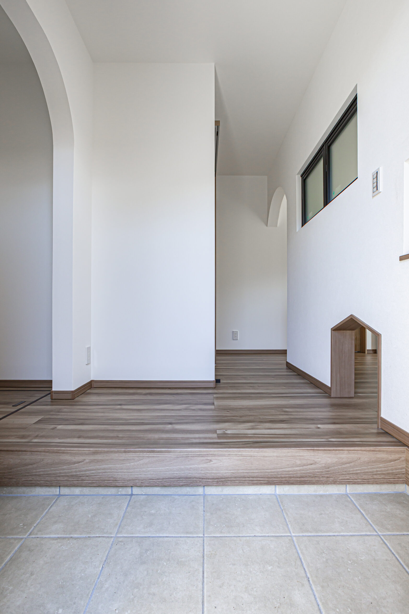 玄関からキッチンにつながる小さなトンネルは、重い荷物を運ぶのにラクチンです◎