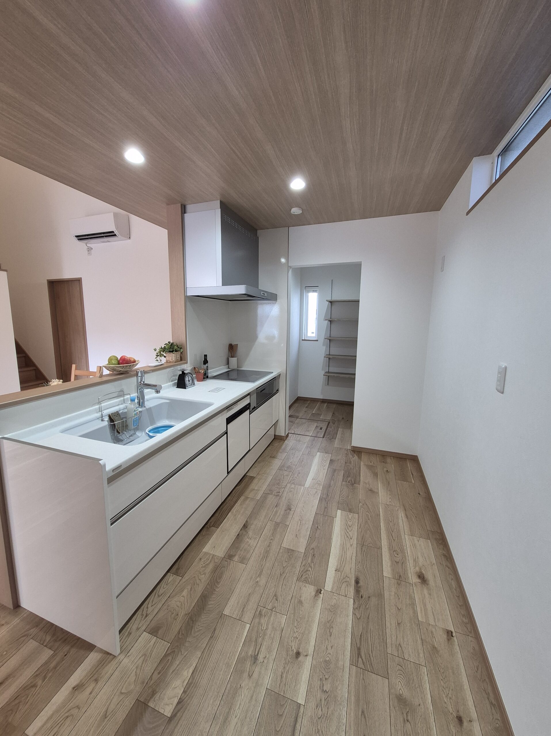 対面キッチンでリビング、ダイニングを見渡せます。 パントリーも隣接している為、使い勝手がとても良いです!