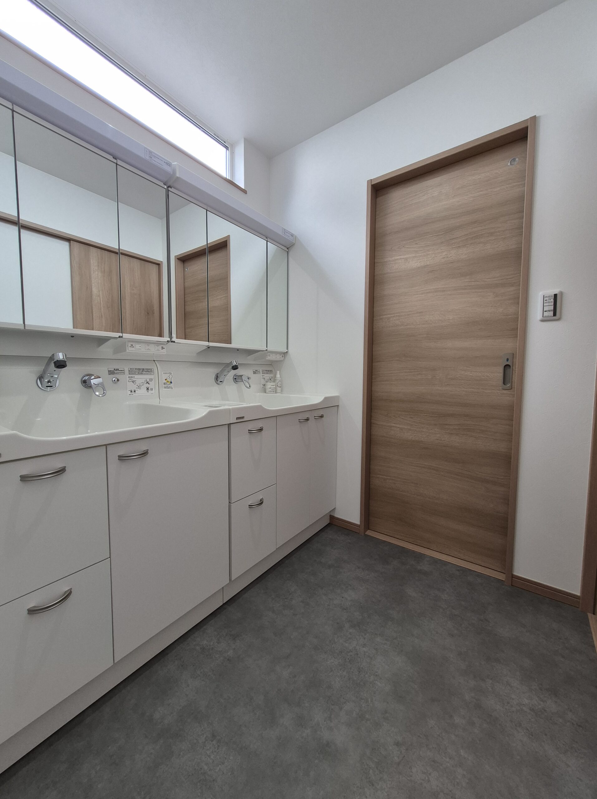 洗面台を2台設置することで朝の時間も込み合うことなくスムーズに使えます! 洗面と脱衣所を分けることによってプライバシーも保てます♪