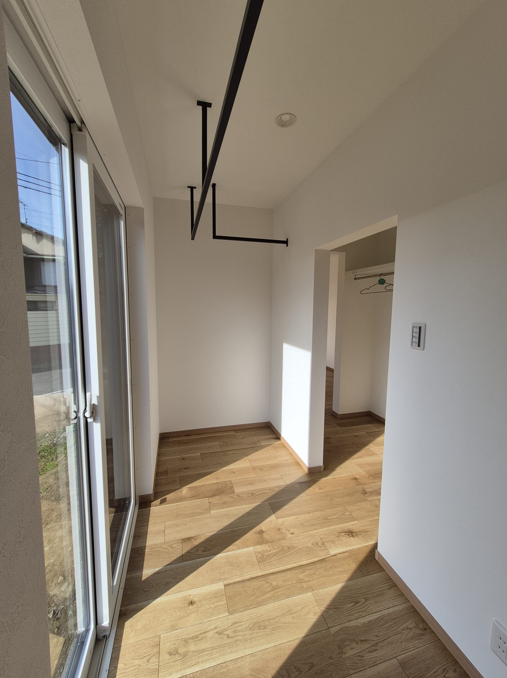 サンルームを設けて花粉が多い季節でも安心して洗濯物が干せます! ウォークインクローゼットと隣接させて家事ラクな動線!