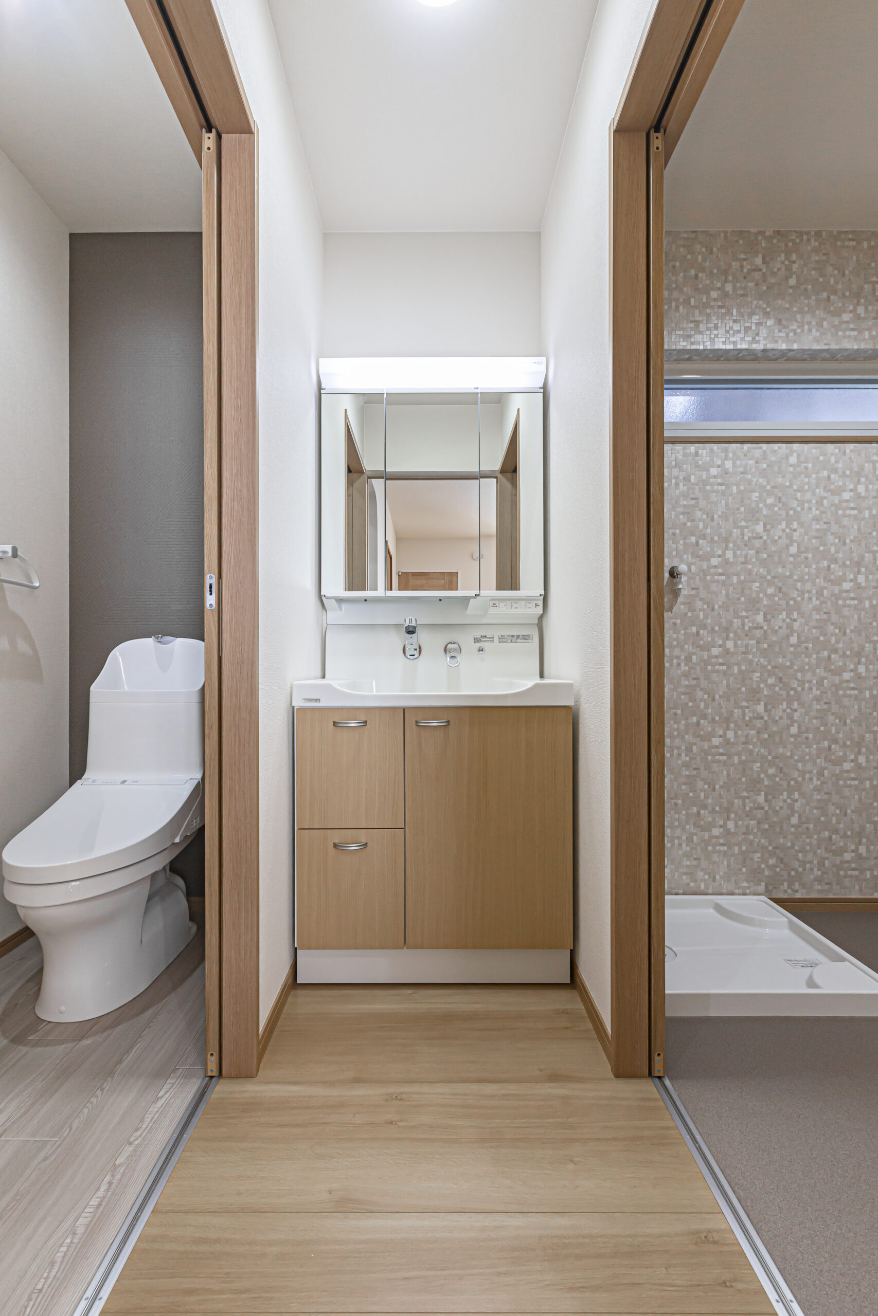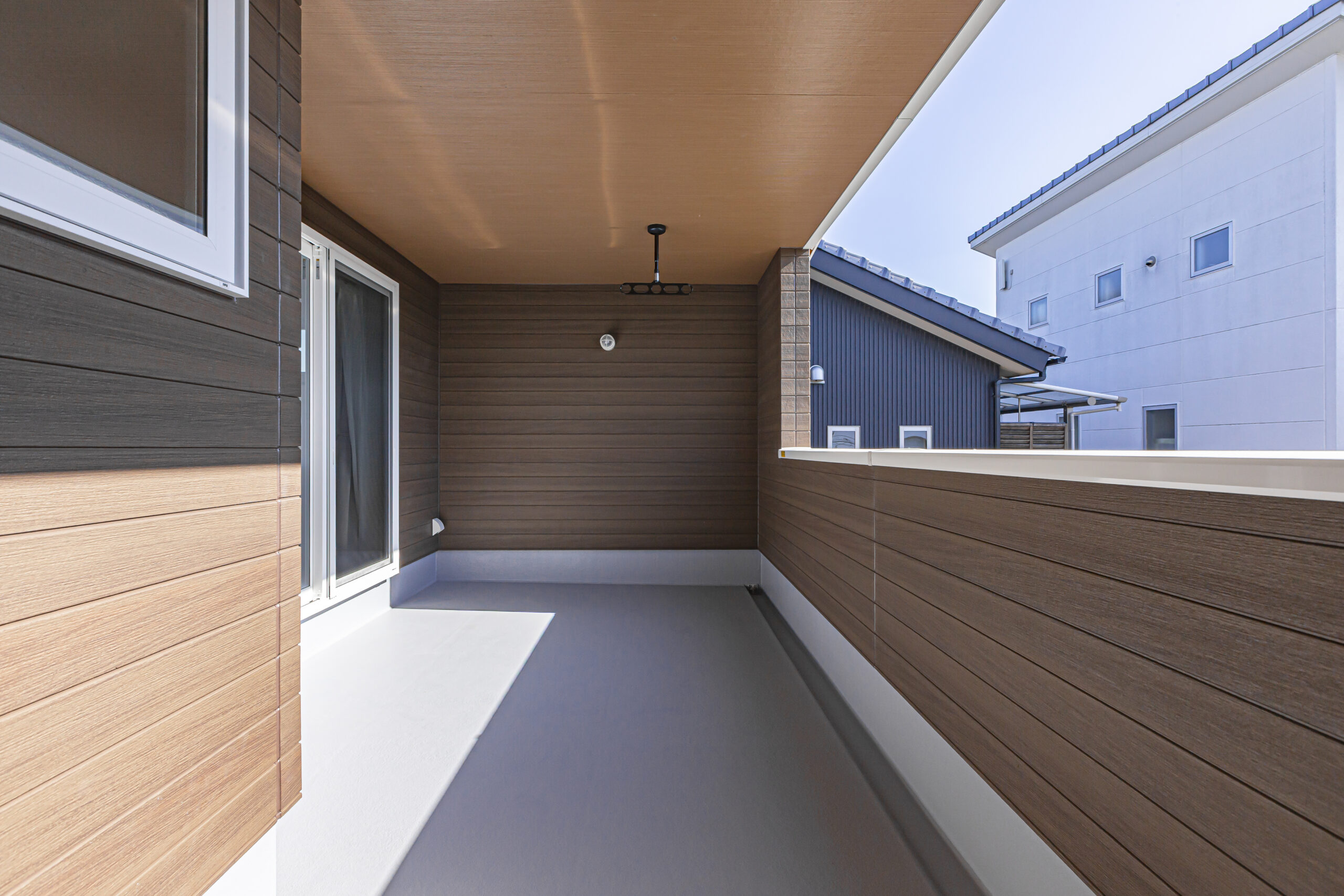 廊下のドアと寝室の引き違い窓の両方から出入りができ、取り込んだ洗濯物はすぐWICへしまえる家事動線が抜群なバルコニー