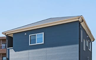 - 一般的によく見かける屋根の種類です。シンプルな形だからこそデザインの多様性があり、和風から洋風までさまざまなイメージに合わせられます。