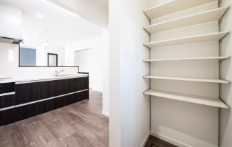 パントリー - キッチンに併設した大容量のパントリーは、缶詰にレトルトパウチ食品、調味料、食器や洗剤、更にはティッシュペーパーなどの日用雑貨まで収納できます。今や、なくてはならない住まいの収納です。なんでも入る大きな収納は、ママの味方です。