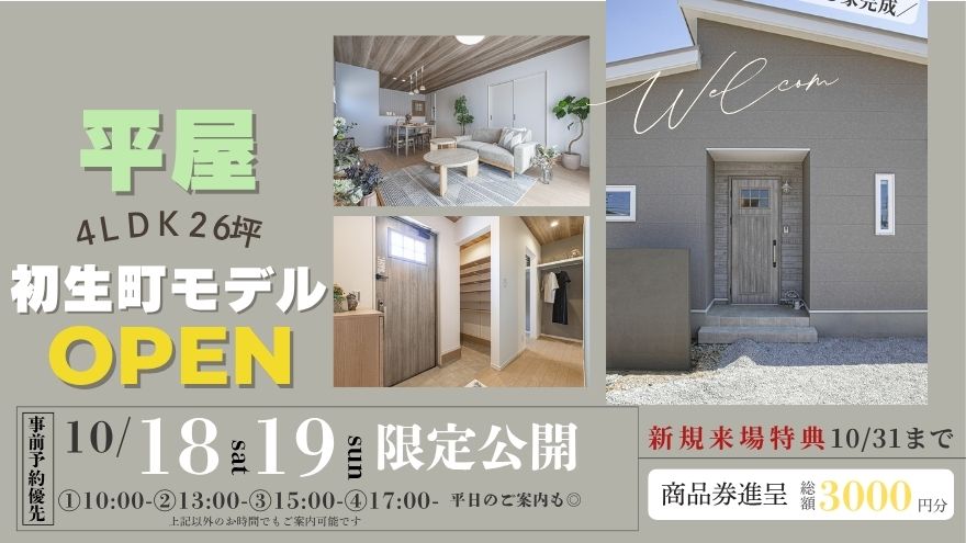【有玉店】10/18㈯19㈰ 初生町 平屋モデルオープン