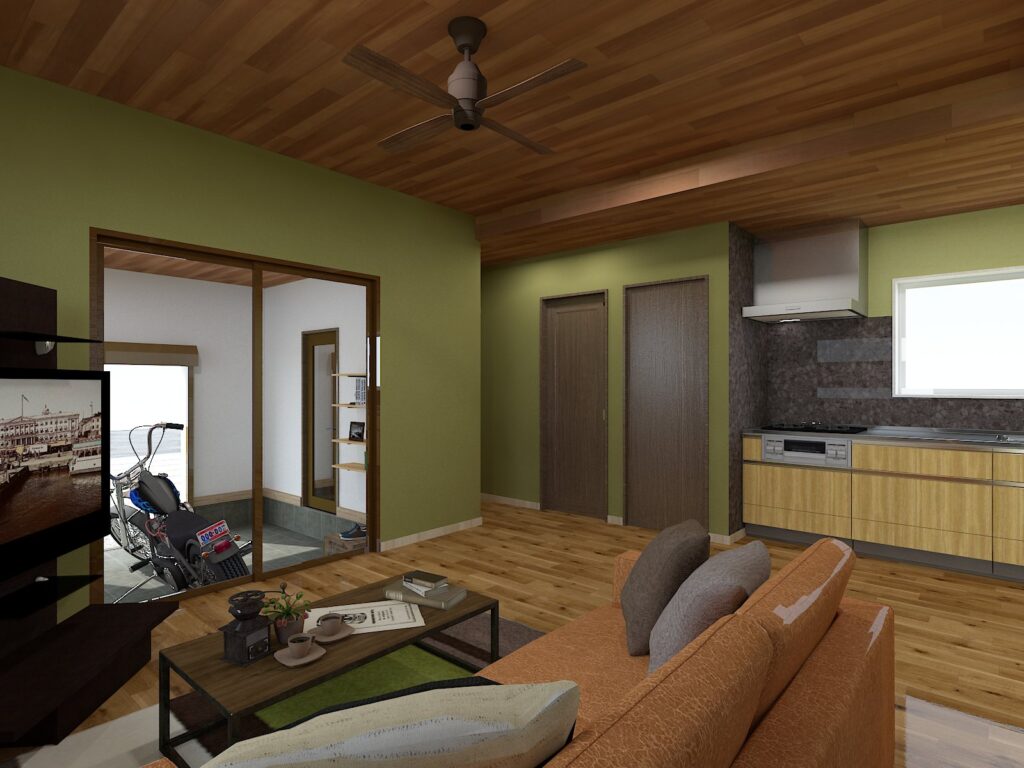 LDKからガレージを眺められる設計。