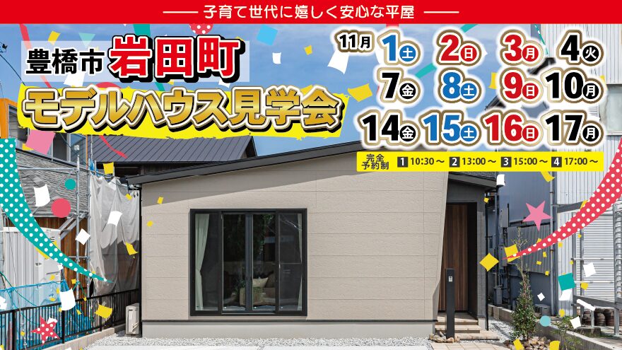 【豊橋市岩田町】11月7日-10日・14日-17日・21日-24日限定|平屋モデル見学会&...