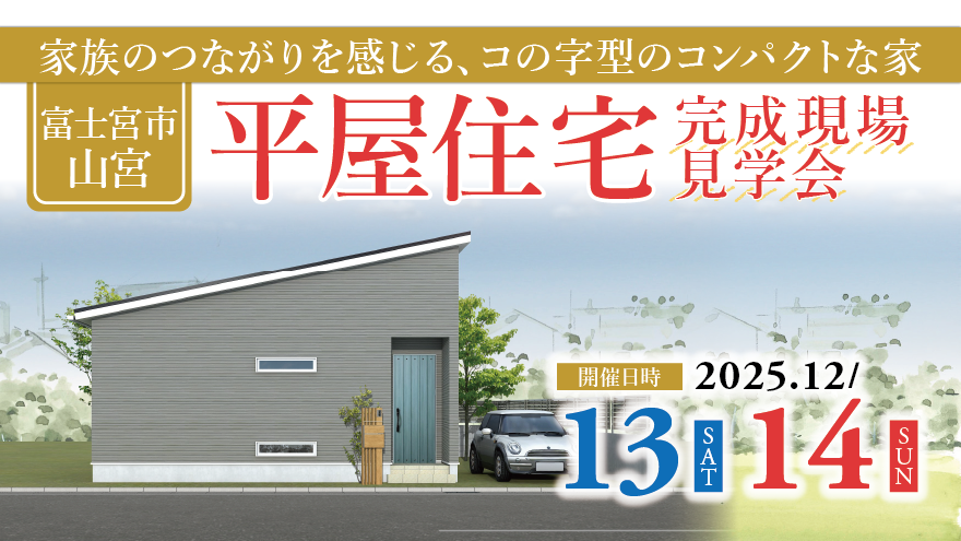 【富士宮市山宮】12月13日-14日 限定|コの字型のコンパクト平屋 完成見学会