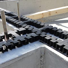 基礎パッキン - 基礎と土台の間に施工する「基礎パッキング工法」を採用。従来の床下換気に比較して約2倍の換気能力と、土台の耐久性を高めます。